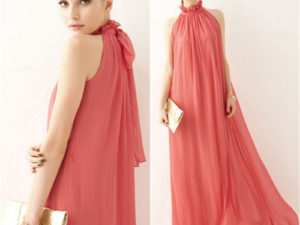 C’est une robe sans manche. Elle dispose d’un col. Elle est très douce et agréable à toucher.